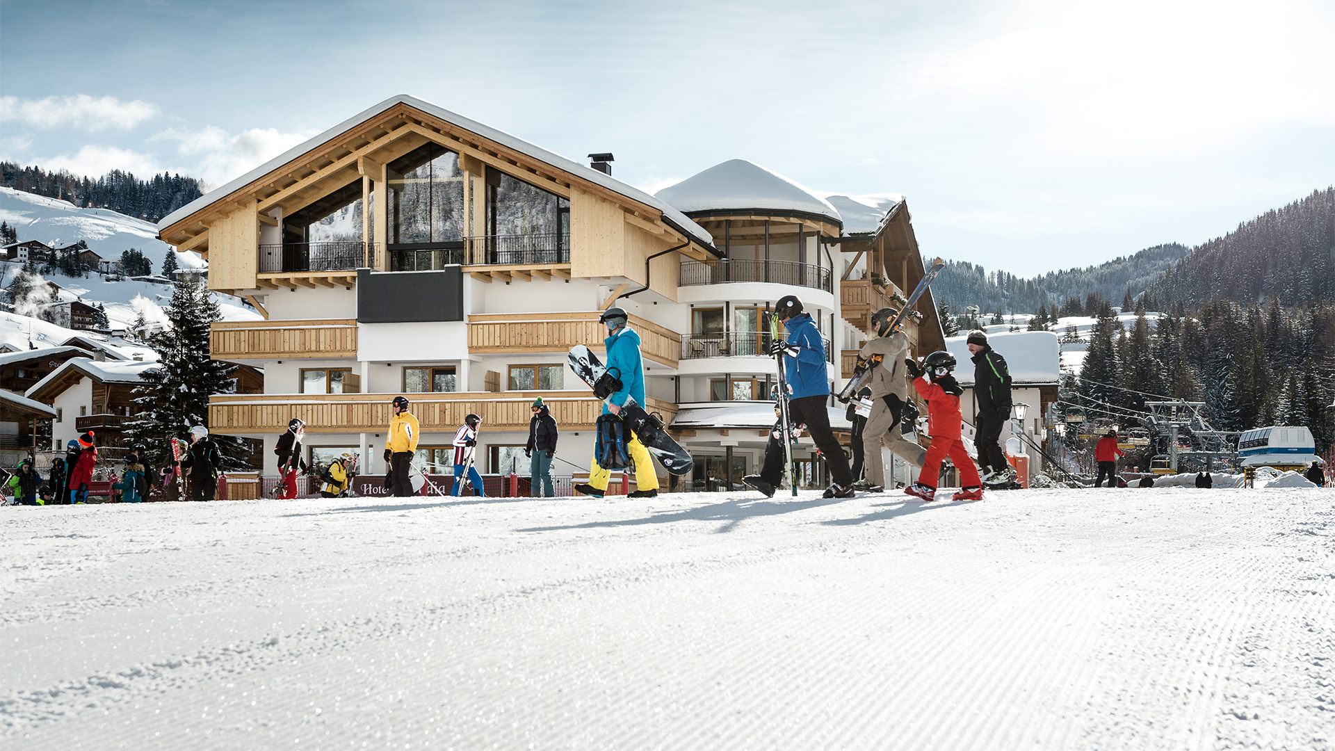 La località di Corvara in Alta Badia, ai piedi del maestoso gruppo del Sella, è una delle mete più ambite per gli amanti degli sport invernali. Il nostro hotel si distingue per l’invidiabile posizione, in quanto al centro della vita sciistica di Corvara: si trova infatti a pochi metri dalla stazione a valle della cabinovia Boè, nel cuore del Dolomiti Superski e del famoso carosello sciistico Sellaronda.